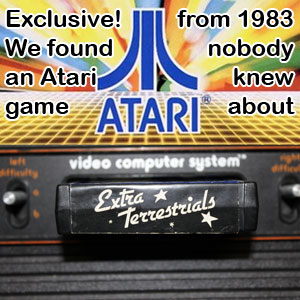 atari.gif Discovery.jpg label.jpg It's not too often that "new" Atari 2600 games are discovered. There are many people engaged in creating new games for the system that arguably defined the entire business of video games, but the discovery of something new from the "good ole days" is quite rare. Museum curator and founder Syd Bolton found himself in a state of disbelief when fellow volunteer George Yallop delivered a "contribution" from someone he knew, who had recently visited the museum. The envelope contained an Atari 2600 cartridge called Extra Terrestrials. Searches of the web didn't reveal any information about the game. It was at this point that Syd realized he may have found a long lost game. This was an important discovery to the muesum and the Atari community as well. The game was produced in Canada. After making some inquiries to the donator the following information was uncovered The game was developed by Skill Screen Games and manufactured by Telcom Research Ltd. in Burlington, Ontario, Canada. et2.jpg cartin.jpg Credits: President: Tom Banting Producer: Peter Banting Packaging & Artwork: J. Maitland Banting Game Design & Programming: Herman Quast The group was hoping to capitalize on the video game market that was booming at the time. They had hoped to get the game out for the 1983 Christmas season, but delays in the programming precluded that and the game missed the Christmas window. After it was finally finished in early 1984, Peter remembers taking the game out to retailers door to door to purchase copies of the game. They had no distributor, and in the end sold only a couple of hundred copies at most. By then, the video game market had collapsed. Inside.jpg http://www.youtube.com/watch?feature=player_embedded&v=mNlZ-x42QYohttp://www.youtube.com/watch?feature=player_embedded&v=mNlZ-x42QYohttp://www.youtube.com/watch?feature=player_embedded&v=mNlZ-x42QYohttp://www.youtube.com/watch?feature=player_embedded&v=mNlZ-x42QYoMore videos about the discovery : http://www.pcmuseum.ca/extraterrestrials.aspSource : http://www.pcmuseum.ca/Attachments:Number of Attachments: 6 Discovery.jpgNumber of Downloads: 3991 Filesize: 36.46 KB atari.gifNumber of Downloads: 3991 Filesize: 3.96 KB Inside.jpgNumber of Downloads: 3991 Filesize: 115.93 KB et2.jpgNumber of Downloads: 3991 Filesize: 19.70 KB label.jpgNumber of Downloads: 3991 Filesize: 25.36 KB cartin.jpgNumber of Downloads: 3991 Filesize: 13.94 KB
