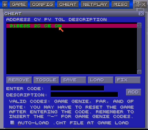 I have ZSNES 1.5 and I added a game genie code, but I'm not sure how to turn it on/off.