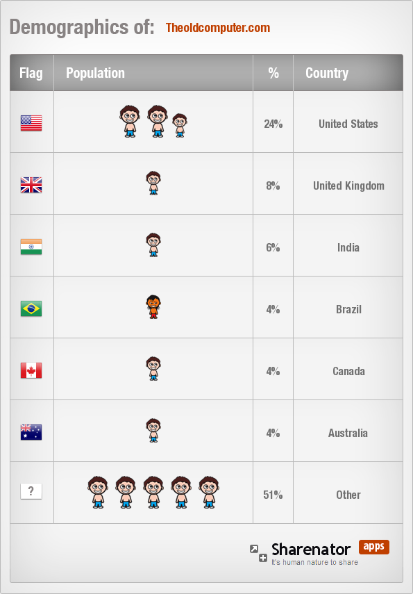 Theoldcomputer.com demographics. The picture above shows where most of Theoldcomputer.com visitors come from.