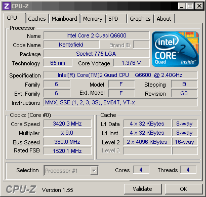 Q6600 at 3.42GHz on Air