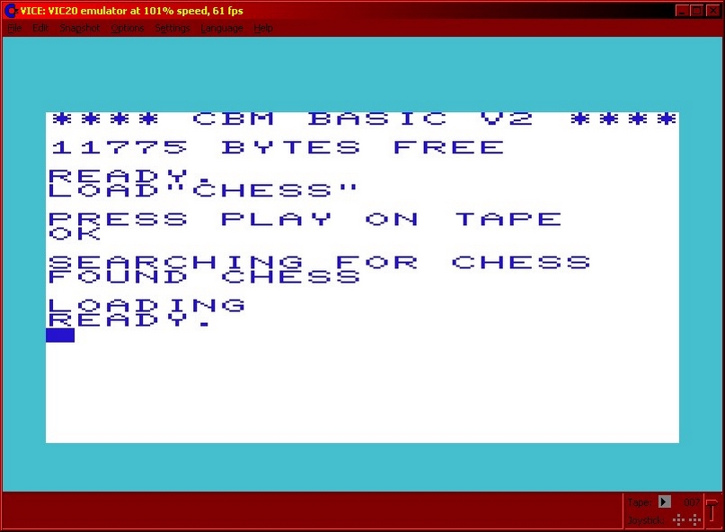 i decide to go retro this morning and play some chess in WinVice emulating the Commodore VIC-20.