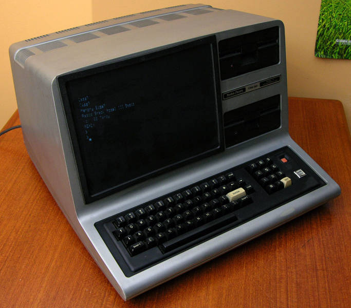 It has a Z80 CPU, 48K RAM, and dual 5.25" floppy drives.