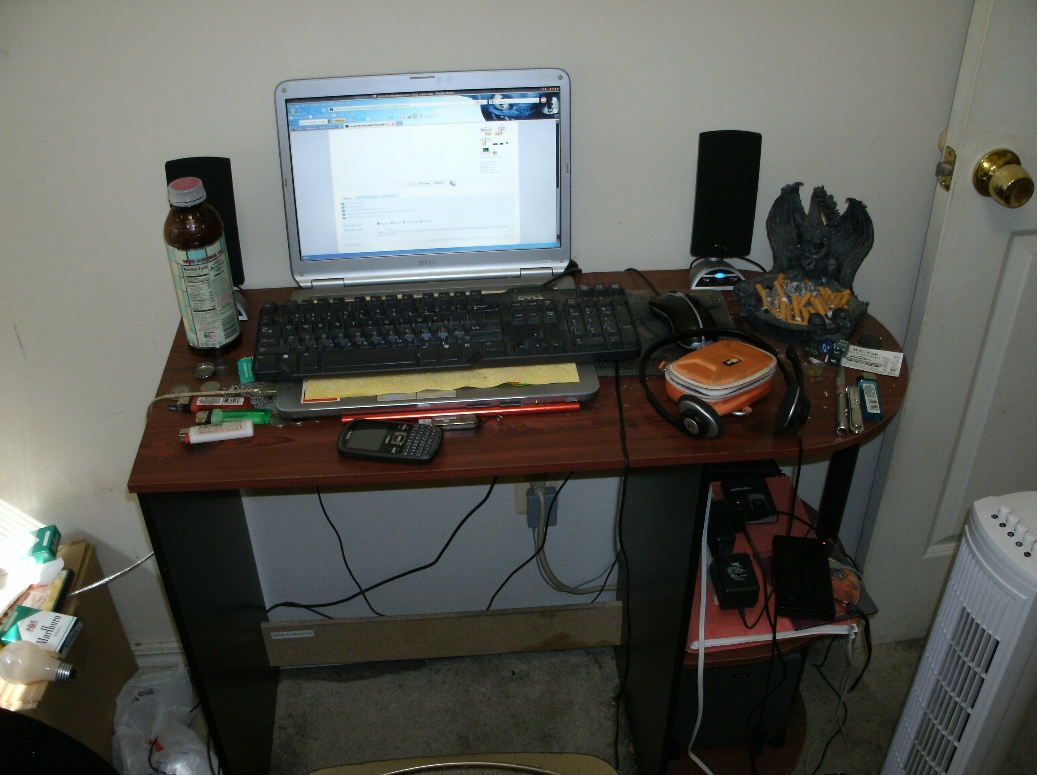 Notes: Hahaha I about posted some pics of everything I have in the 2 filing cabinets behind the desktop, the desk droors, and the little carboard box right next to the desk, but that could have unexpected results so I kept everything closed :hi: