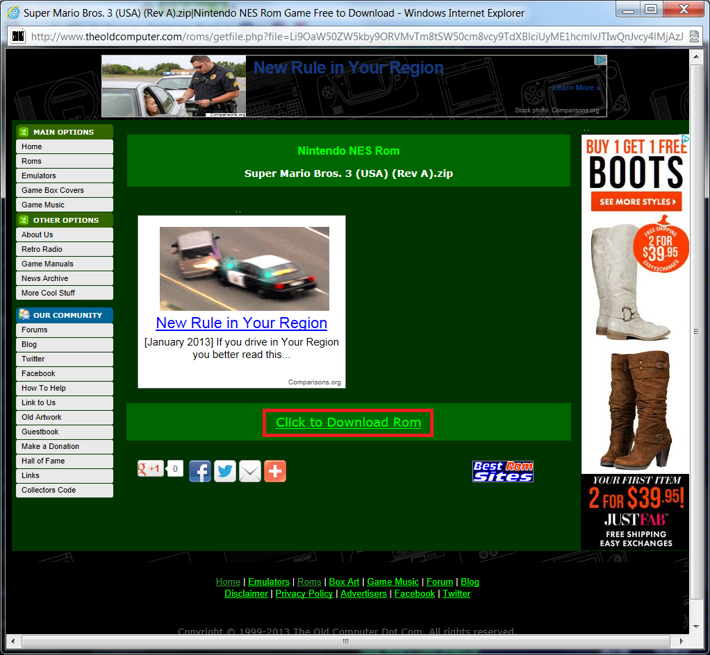 Im trying to download mame roms so I login, select mame, pick romset .139 and then select my rom that i want to download. Then nothing happens. It takes me to a page with nothing but advertisement and the only link that looks like it could download is for a 7zip program. I have enabled popups and tried on both Firefox and IE. Am I missing something?