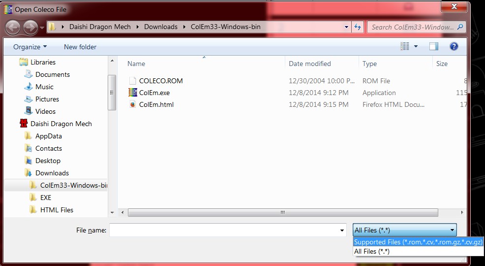 I Just downloaded both the ColEm emulator and the ROM set but when trying to load games none of the roms I downloaded are recognized as they are all in .bin while the emulator is looking for .rom files anyone know what I need to do or how to convert from .bin to .rom? Thanks for any help with this.
